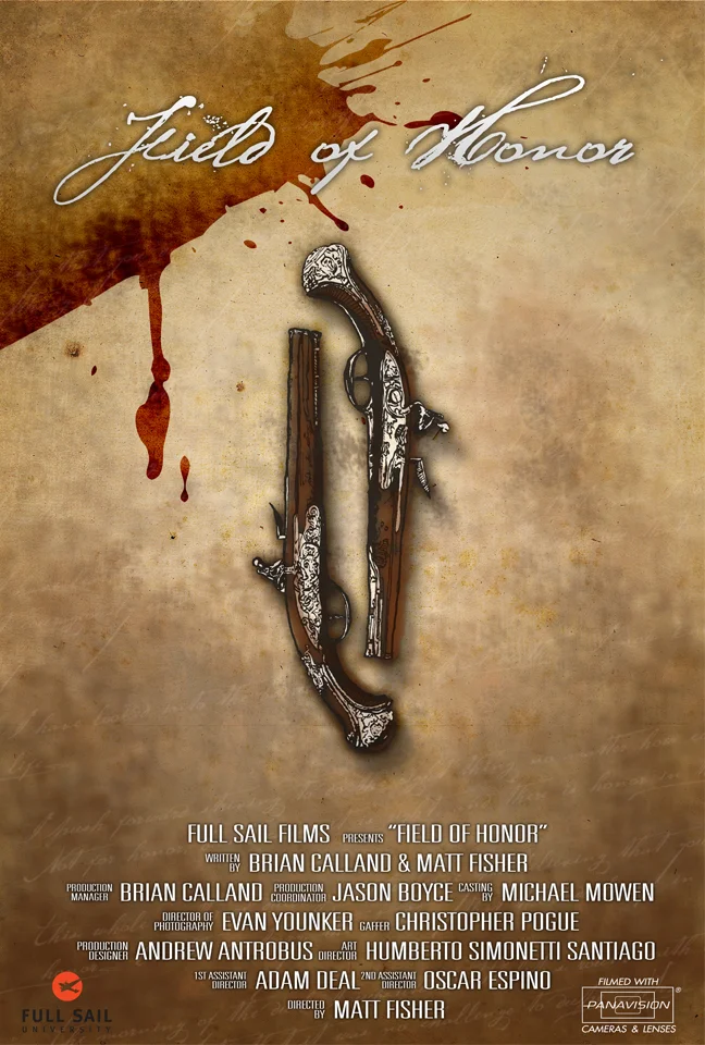 Field of Honor was inspired by an inner struggle I dealt with while at film school. That inner dialogue about the true meaning of honor and character became the theme that the script was built upon. At the time I was heavily influenced by Stanley Kubrick's "Barry Lindon." I was also influenced by a very chilling painting by Ilya Repin (1844–1930), “Eugene Onegin and Vladimir Lensky's Duel”